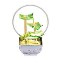 Petit humidificateur d'eau circulante de bureau en verre en forme de feuille de lotus, avec son de gouttelettes d'eau, design simple et moderne pour la décoration de la maison