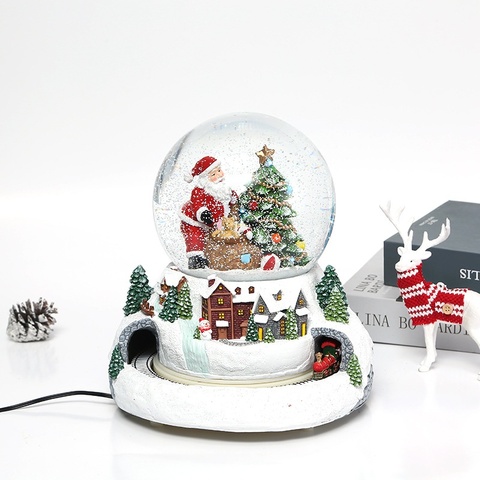 Globo de Nieve Navideño Personalizado de Resina Hecho a Mano y Pintado a Mano con Diseño de Papá Noel, Árbol, Casa de Pueblo, Esquí, Estatua, Luz y Música